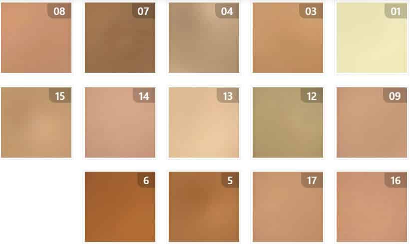 - גוון 17 – גוון מדיום בהיר – כהויות קלות עור בהיר עד כהה.
